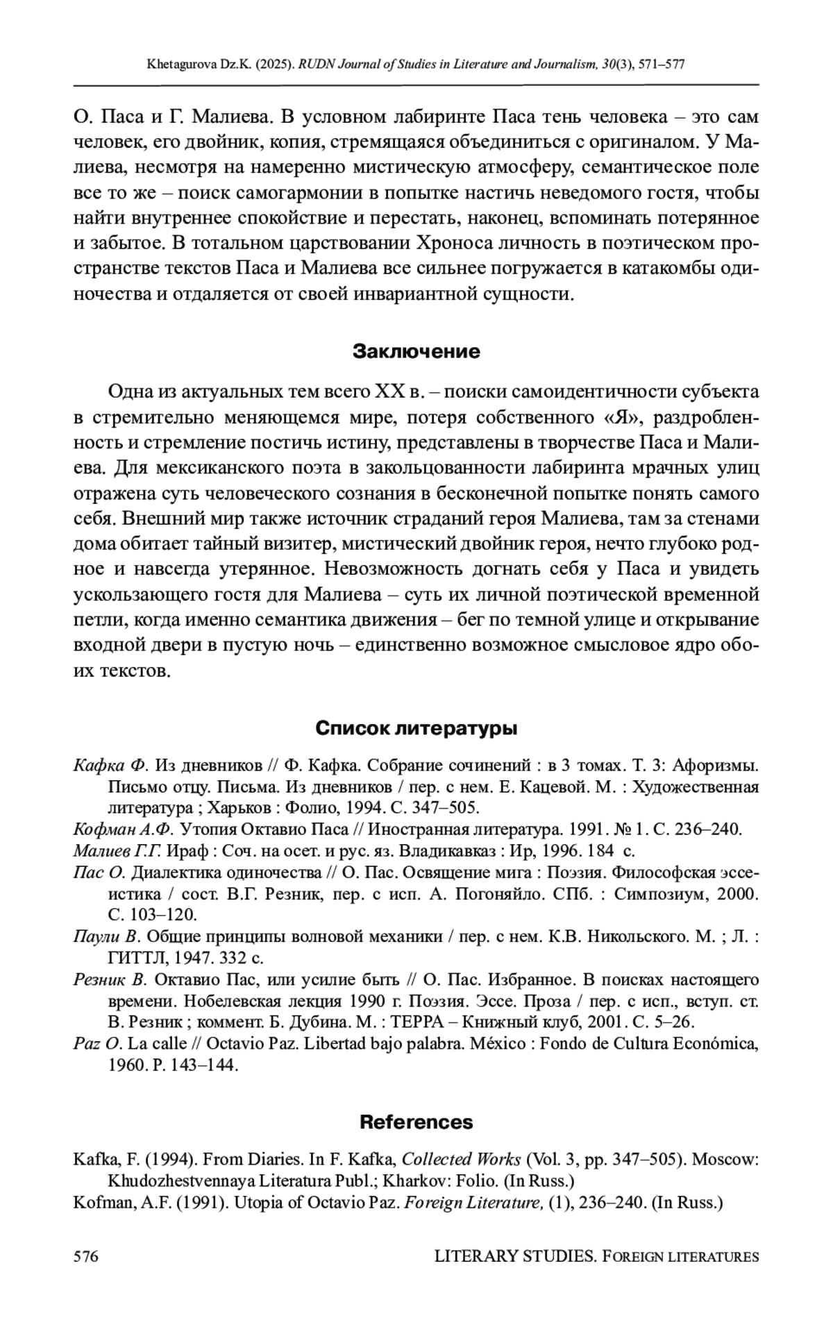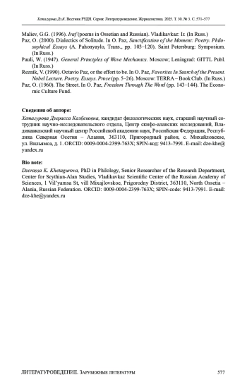 4. Пас О. Диалектика одиночества // О. Пас. Освящение мига: Поэзия. Философская эссеистика / сост. В.Г. Резник, пер. с исп. А. Погоняйло. СПб.: Симпозиум, 2000. С. 103-120.