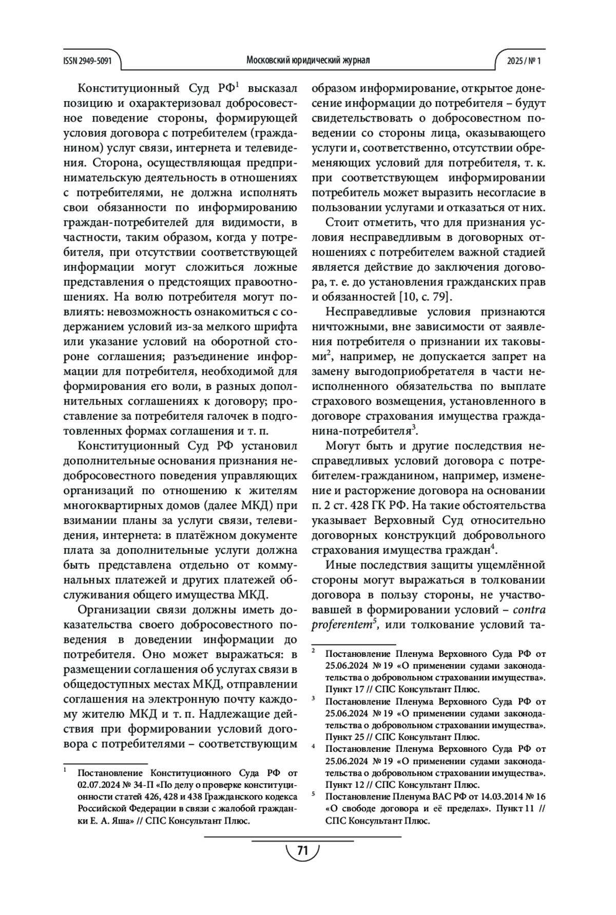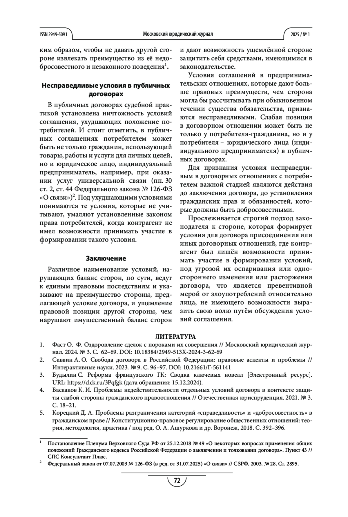 4. Баскаков К. И. Проблемы недействительности отдельных условий договора в контексте защиты слабой стороны гражданского правоотношения // Отечественная юриспруденция. 2021. № 3. С. 18-21.