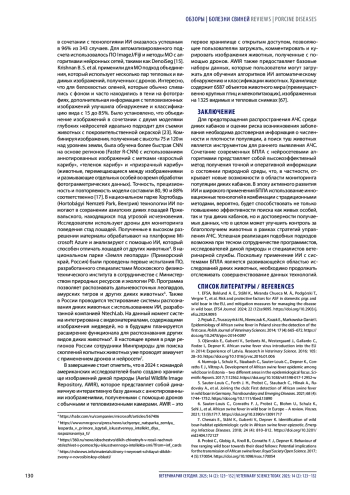 37. Allepuz А., Hovari M., Masiulis M., Ciaravino G., Belträn-Alcrudo D. Targeting the search of African swine fever-infected wild boar carcasses: A tool for early detection. Transboundary and Emerging Diseases. 2022; 69 (5): e1682-e1692. DOI: 10.1111/tbed.14504