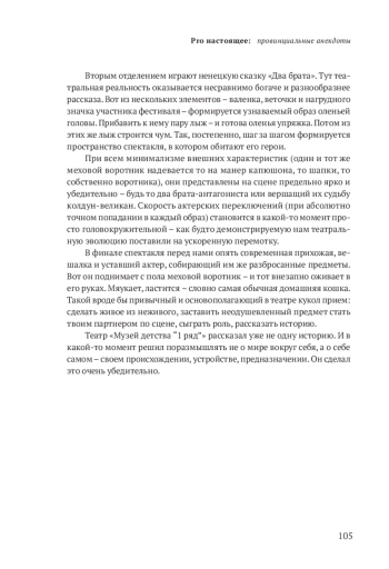 Театр называется «Музей Детства “1 ряд”» – в этом имени заложен ключ к его устройству и предназначению. «1 ряд», потому что камерный – работает со своим зрителем буквально на расстоянии вытянутой руки; «Музей Детства», потому что именно образы детских игр, воспоминаний, фантазий становятся сюжетной и драматической основой спектаклей.