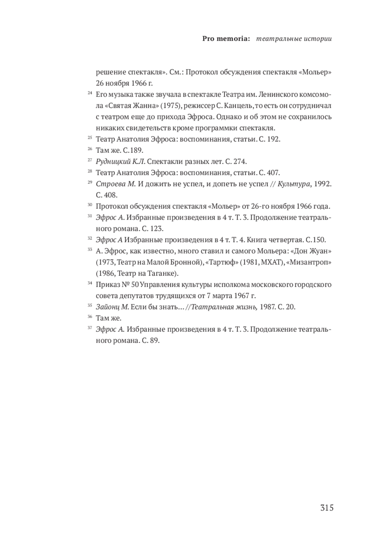 14. Эфрос А. Избранные произведения в 4 т. Т. 3. Продолжение театрального романа. 2-е изд., доп. М.: Фонд “Русский театр”: Издательство “Парнас”, 1993. С. 123.