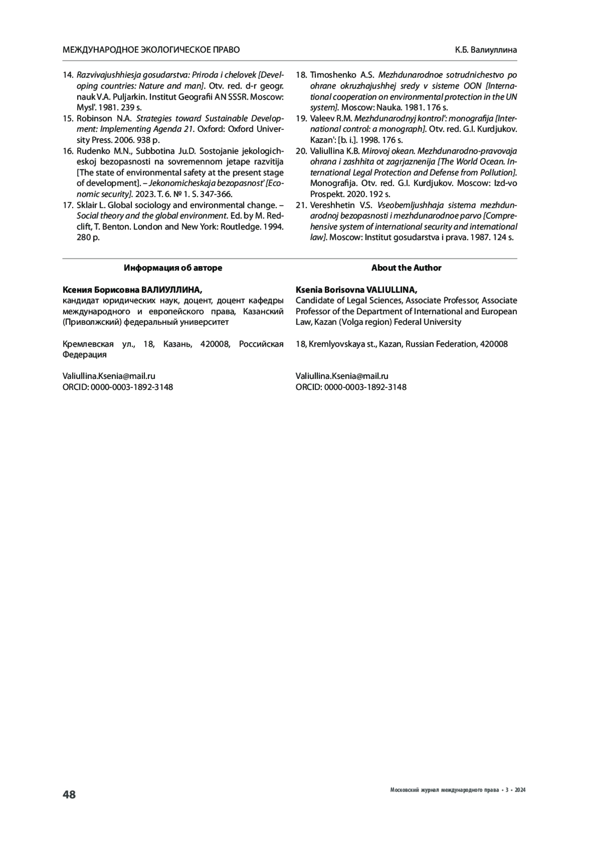 ОБСУЖДЕНИЯ И ВЫВОДЫ. Сохранение окружающей природной среды является комплексной задачей, требующей не только законодательного урегулирования как на международном, так и на внутригосударственном уровне, но и формирования правильного общественного сознания о его значимости для существования всего живого на планете, единстве экосистем и ценности всех компонентов окружающей природной среды, что, помимо прочего, позволит мировому сообществу сплотиться в рамках сотрудничества по глобальным природоохранным вопросам, созданию системы повсеместной экологической безопасности.