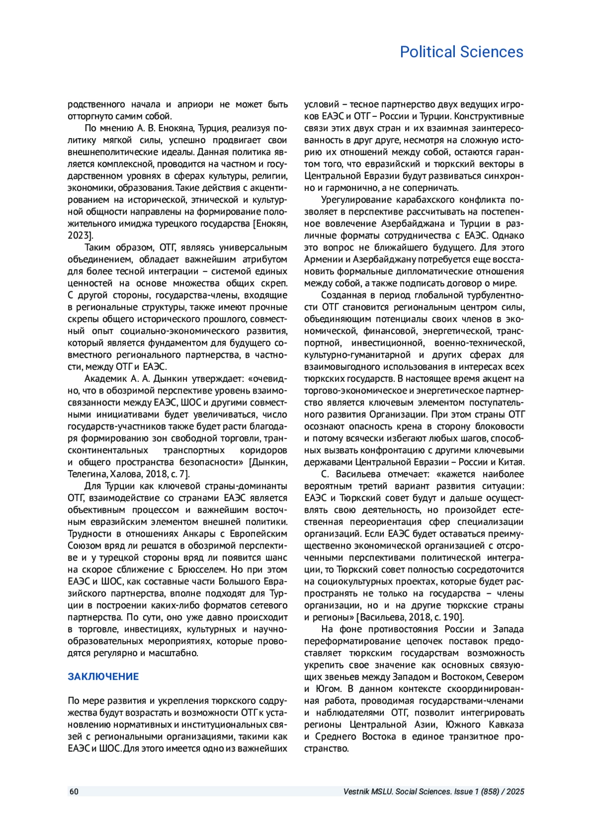 7. Васильева С. А. ЕАЭС и Тюркский совет: перспективы взаимодействия // Известия Уральского федерального университета. Сер. 3, Общественные науки. 2018. Т. 13. № 3 (179). С. 184-192.