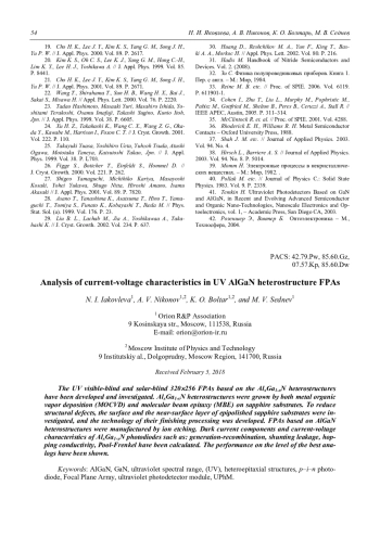 N. I. Iakovleva, A. V. Nikonov, K. O. Boltar, and M. V. Sednev Analysis of current-voltage characteristics in UV AlGaN heterostructure FPAs 44