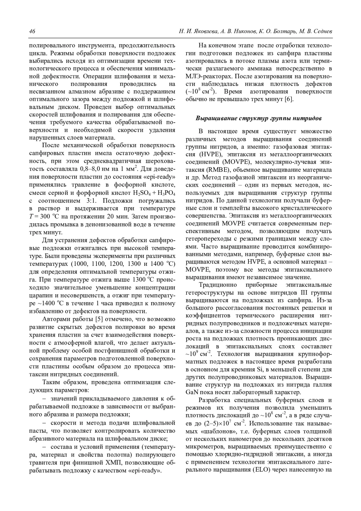 12. Zhuravlev K. S., Mansurov V. G., Protasov D. Yu., Polyakov A. Y., Smirnov N. B., Govorkov A. V. // J. Appl. Phys. 2009. Vol. 105. No. 11. P. 113712.