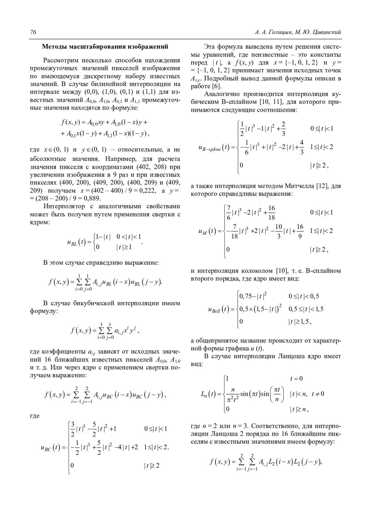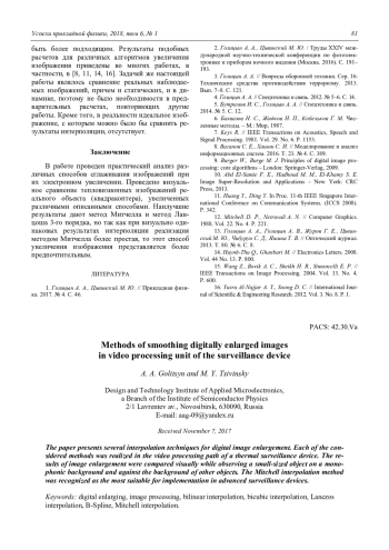 A. A. Golitsyn and M. Y. Tsivinsky Methods of smoothing digitally enlarged images in video processing unit of the surveillance device 75