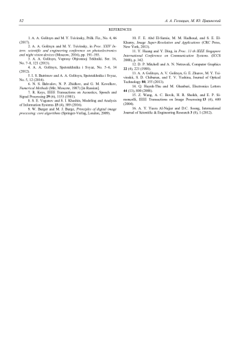 10. Abd El-Samie F. E., Hadhoud M. M., El-Khamy S. E. Image Super-Resolution and Applications – New York: CRC Press, 2013.