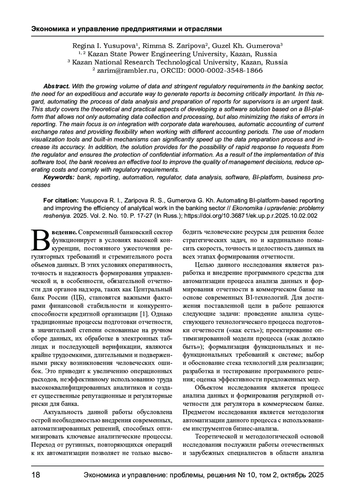 5. Юсупова Р. И., Зарипова Р. С. Роль BI-систем в бизнесе // Технологический суверенитет и цифровая трансформация. Материалы международной научно-технической конференции. Казань, 2025. С. 432-435. EDN: NGEMAU