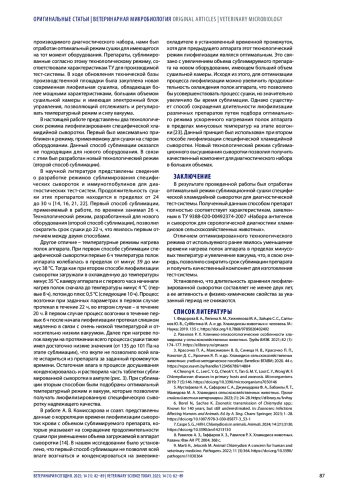 14. Комиссаров А. В., Бадарин С. А., Бибиков Д. Н., Синицына Н. В., Костылева Н. И., Глазкова Е. А. и др. Совершенствование сублимационной сушки холерных диагностических сывороток в ампулах. Бактериология. 2023; 8 (2): 34-41.