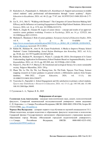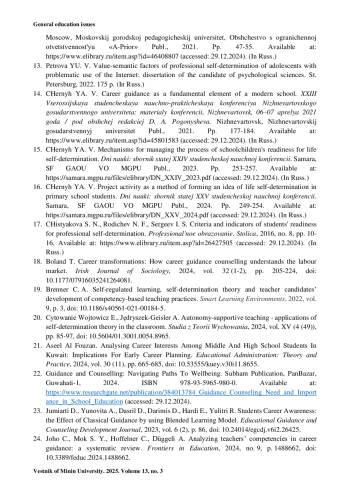 28. Malinda D., Mandyata J. Role of career guidance // European Journal of Education Studies. 2024. Vol. 8, no. 2. P. 26. Available at: https://www.researchgate.net/publication/380375218_xx_ROLE_OF_CAREER_GUIDANCE_-_J_M_Mandyata (accessed: 29.12.2024).