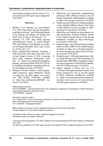 4. Мишустин: Россия входит в тройку крупнейших экспортеров угля // ТАСС [Электронный ресурс]. 03.06.2025. URL: https://tass.ru/ekonomika/24092007 (дата обращения: 15.05.2025).