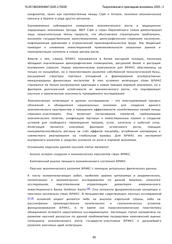 8. Евсин М.Ю., Зироян Р.А. Страны БРИКС в мировой экономике // ЭФО: Экономика. Финансы. Общество. 2024. № 4. С. 25-38. DOI: 10.24412/2782-4845-2024-12-25-38 EDN: ARSVCA