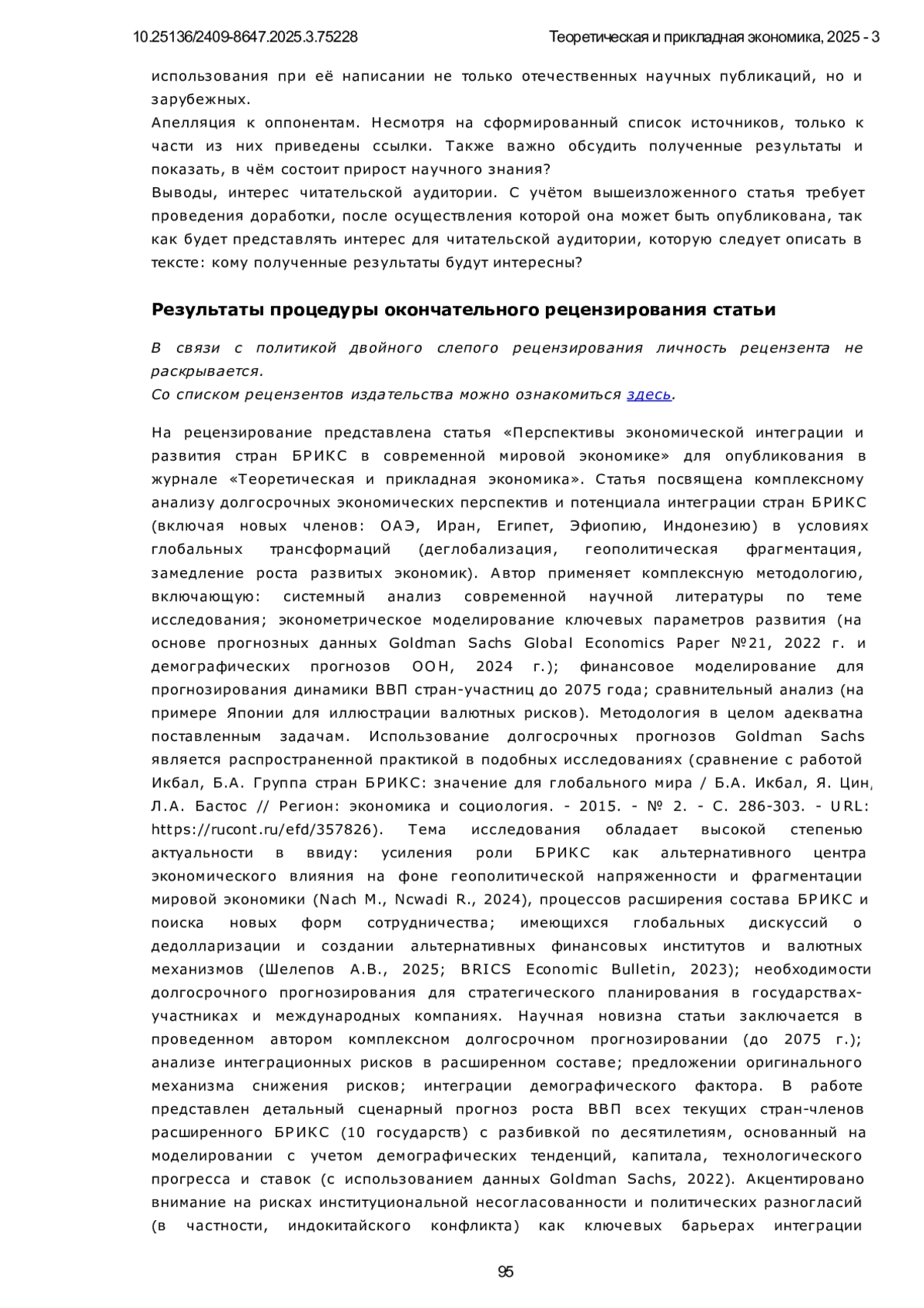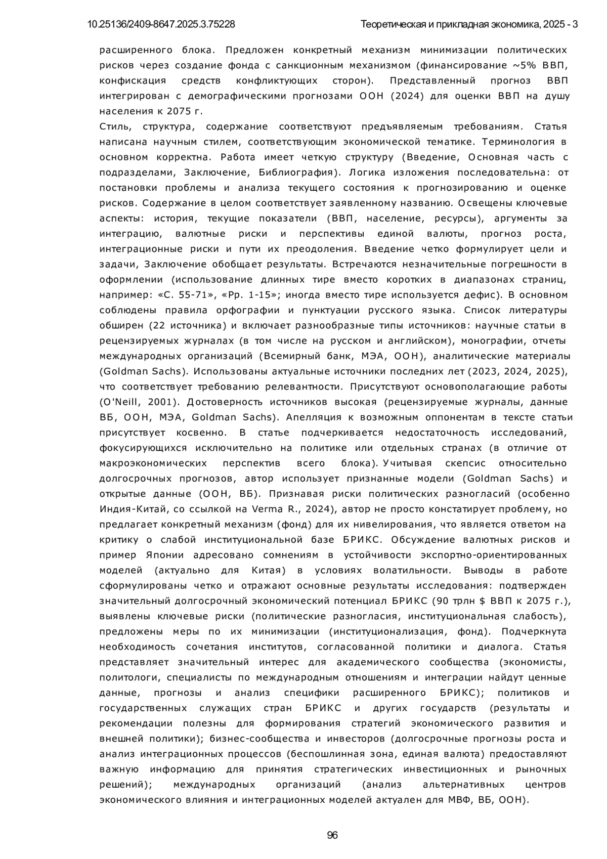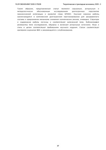 6. Шелепов А.В. Сотрудничество БРИКС по реформированию международной валютно-финансовой системы и ее институтов // Вестник международных организаций: образование, наука, новая экономика. 2025. Т. 20. № 1. С. 9. EDN: XWQXJN