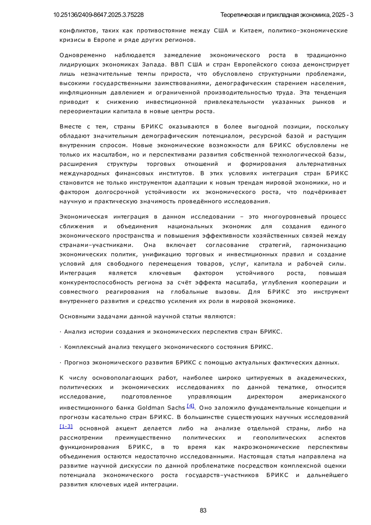 3. Сергеева Н.В. Россия и БРИКС в новых геополитических реалиях // Экономика. Налоги. Право. 2024. Т. 17. № 1. С. 119-131. DOI: 10.26794/1999-849X-2024-17-1-119-131 EDN: WFZKHI