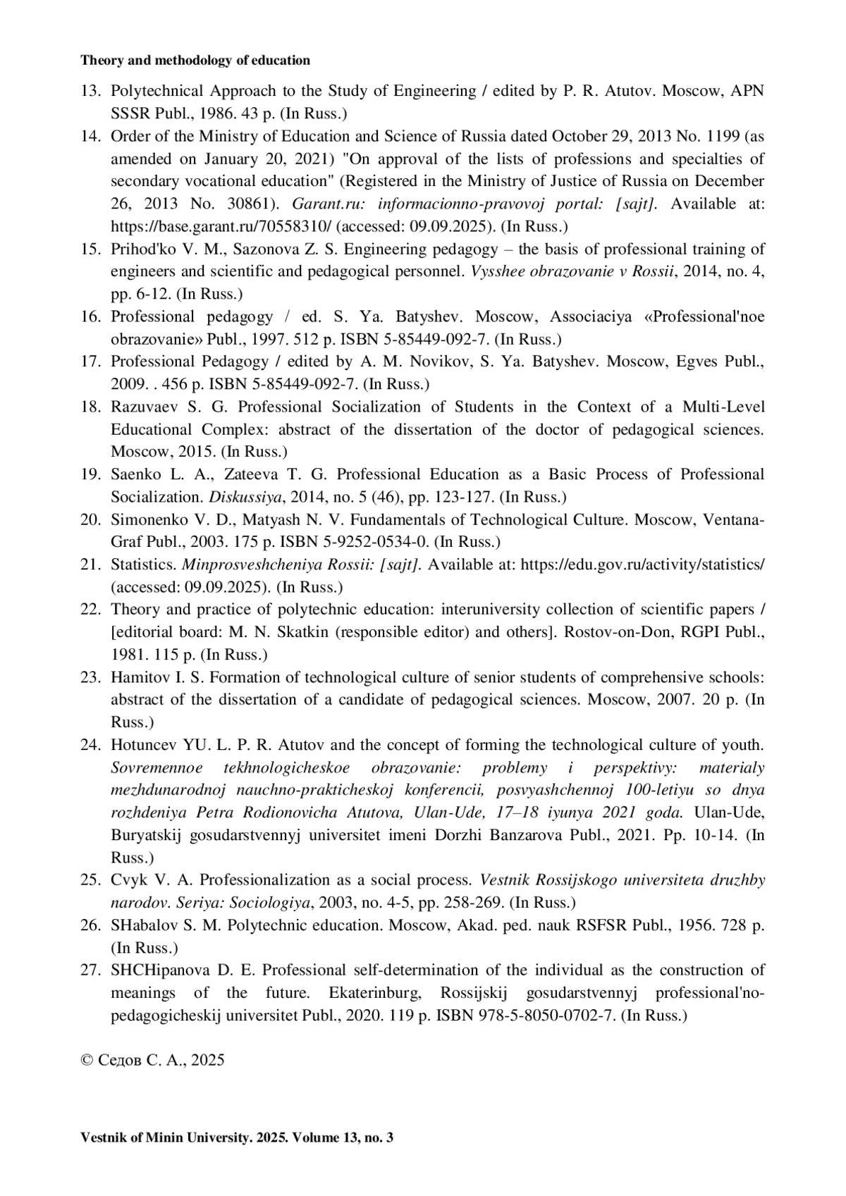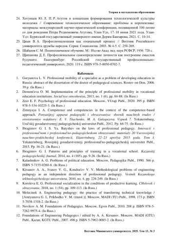 15. Приходько В. М., Сазонова З. С. Инженерная педагогика - основа профессиональной подготовки инженеров и научно-педагогических кадров // Высшее образование в России. 2014. № 4. С. 6-12.