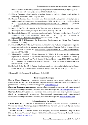 26. Zimbardo P. G., Boyd J. N. Putting time in perspective: a valid, reliable individual-difference metric // Journal of Personality and Social Psychology. 1999. Vol. 77, no. 6. Pp. 1271-1288.