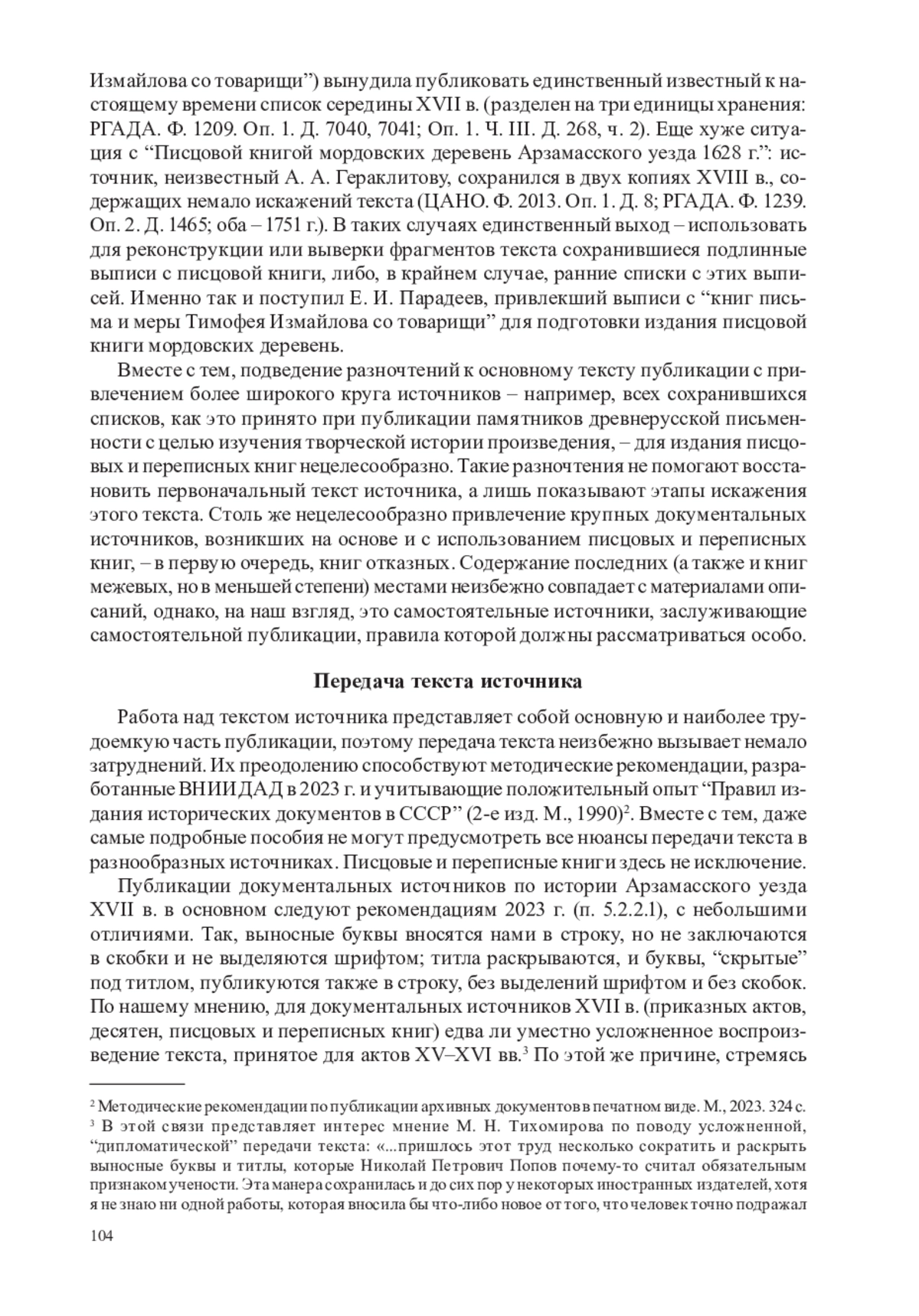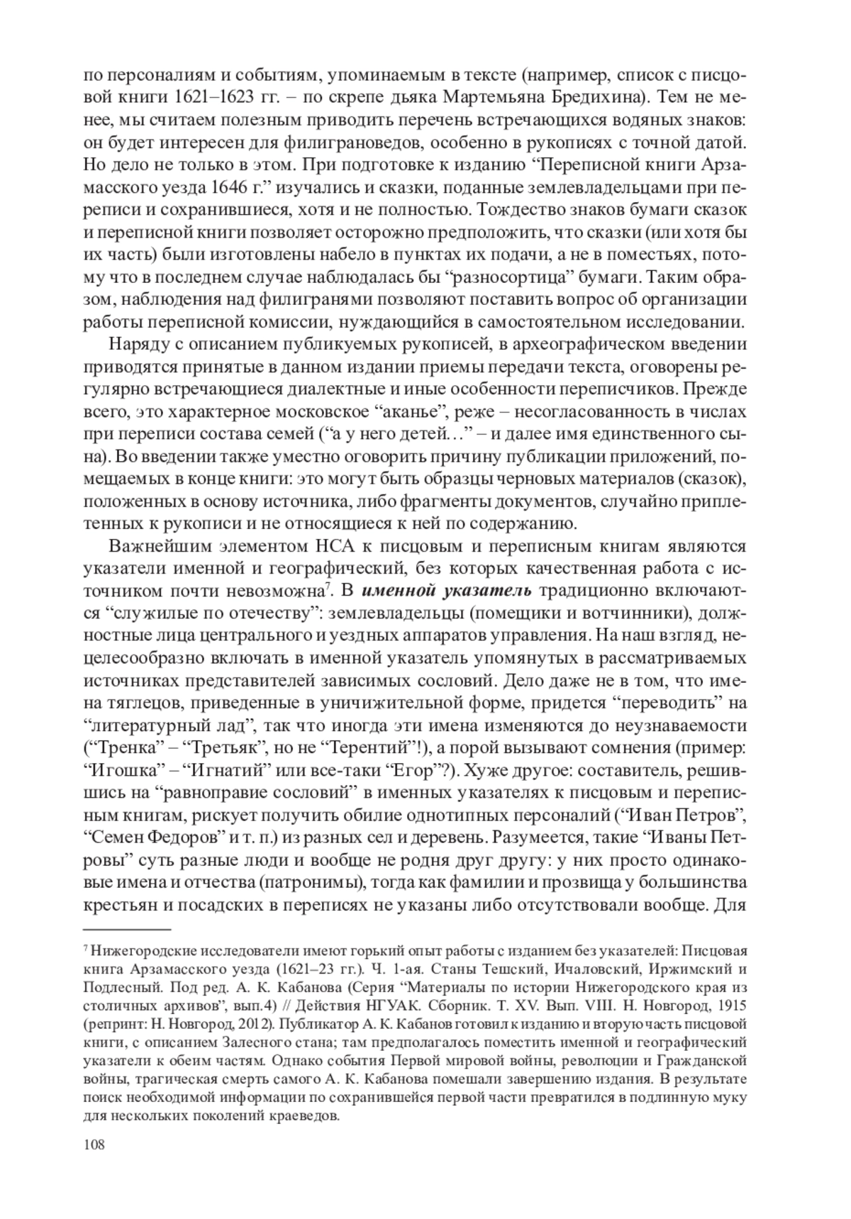Писцовые и переписные книги XVII в., содержащие описание податных объектов и тяглого населения, занимали видное место в системе налогового учета Русского государства и остаются одним из важнейших источников для изучения социально-экономической истории. Поэтому издательский проект “Арзамасский уезд в XVII веке”, реализуемый нижегородскими архивистами с 2017 г. и призванный хронологически продолжить издания, выходившие в досоветский период, предусматривает публикацию писцовой книги 1621–1623 гг. и переписных книг, созданных в результате валовых описаний, проведенных в 1646 г. и в 1677/78 г. Материалы письма и переписей, наряду с актами приказной избы и десятнями “служилого города”, составляют, на наш взгляд, репрезентативный комплекс документальных источников, относящихся к данному уезду.