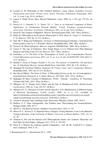 36. Bollnow O. F. Neue Geborgenheit. Das Problem einer Überwindung des Existenzialismus. Stuttgart; Köln, 1960. 247 S.
