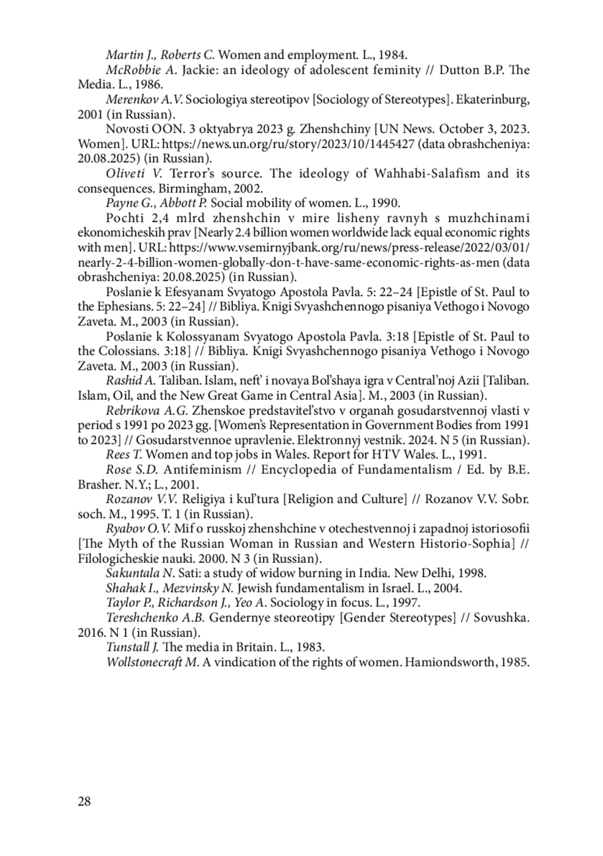 Настоящая статья продолжает тему генезиса, распространения и функционирования в обществе социальных стереотипов — схематизированных, стандартизированных, обычно эмоционально окрашенных и обладающих высокой устойчивостью представлений о социальном объекте. Как правило, стереотипы воспринимаются некритически и часто просто принимаются “на веру”, поэтому не только способствуют неполному или искаженному восприятию окружающей действительности, но и реально влияют на массовое сознание и индивидуальное поведение. В числе наиболее распространенных разновидностей стереотипов расово — этнические стереотипы, аккумулирующие набор представлений о внешности, уровне интеллекта и характере представителей разных этносов; возрастные стереотипы, получившие название “эйджизм” и стандартизирующие поведение и возможности людей в зависимости от возраста; религиозные стереотипы, воплощающие набор представлений о содержании религиозных доктрин или представителях разных конфессий; социально-классовые стереотипы, маркирующие людей в зависимости от уровня материального достатка или социального статуса. Стереотипы также укоренены во всех сферах социальной жизни, в связи с чем выделяют экономические, политические, профессиональные и т. п. стереотипы. В гендерных стереотипных представлениях, которые являются наиболее распространенными, очевидно изначально четкое распределение социальных ролей и обязанностей полов, исторически восходящее к патриархальному общественному устою, закрепляющему превосходство мужчины во всех сферах социальной жизни. История эволюции социальных отношений, в том числе и гендерных, свидетельствует о том, что патриархальные взгляды и стереотипные представления о женственности и мужественности медленно, но уверенно шли по пути обновлений. Значительный вклад в данный процесс внесло феминистское движение, выступающее как за возрастающую социальную роль женщин, так и за право женщины определять себя как самостоятельную личность. Однако гендерные стереотипы все же продолжают сохраняться в культурной основе социальной реальности, и проявляют себя в различных областях социальной жизни, хотя и в более завуалированной форме. В статье рассматриваются три основные группы гендерных стереотипов, в соответствии с которыми на протяжении долгого времени выстраивались маркеры и образцы поведения мужчины и женщины. Их генезис, а также факторы, влияющие на укрепление в обществе, нашел отражение в многочисленных социологических исследованиях, которые являются особым предметом анализа в рамках настоящей статьи.
