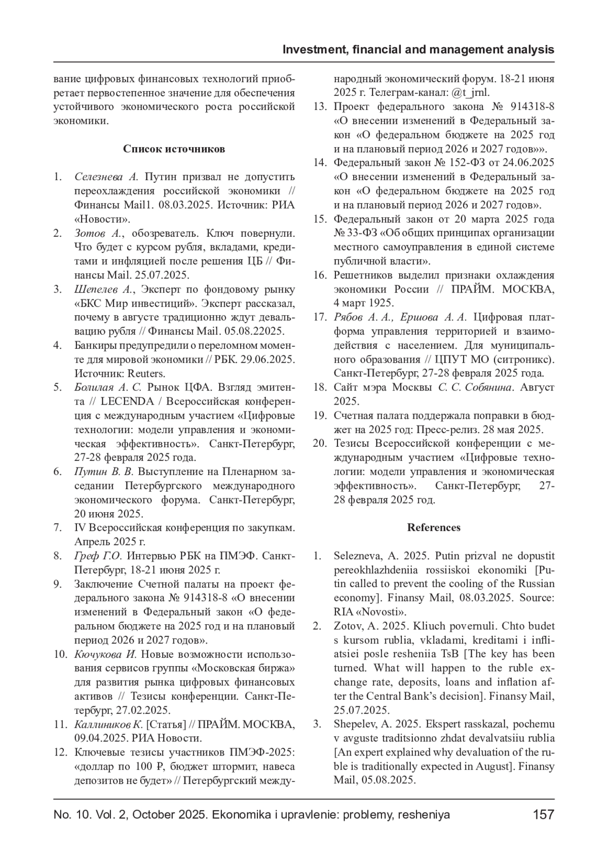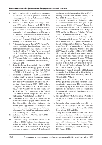 12. Ключевые тезисы участников ПМЭФ-2025: “доллар по 100 ₽, бюджет штормит, навеса депозитов не будет” // Петербургский международный экономический форум. 18-21 июня 2025 г. Телеграм-канал: @t_jrnl.