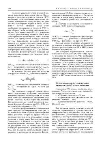 A. I. Andosov, A. A. Batsheva, A. V. Polesskiy, V. K. Tresak, and K. A. Khamidullin Methods for measur-ing the size of the photosensitive area, Uneven sensitivity and coefficient photovoltaic communication (a review) 149