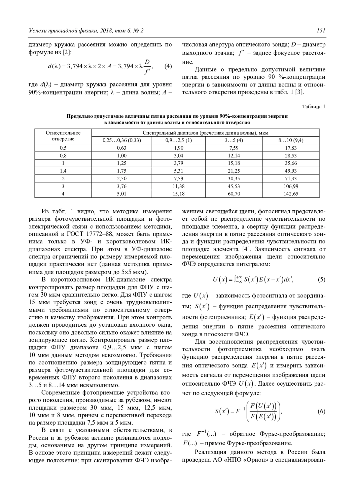 Для измерения данных параметров у ФПУ второго поколения средневолнового и длинноволнового ИК-диапазонов в России и за рубежом используются идентичные методики измерения. Для реализации данных методик обязательными данными являются функция распределения энергии в пятне рассеяния, измерение которой не является тривиальной задачей. Наиболее современная КИА, применяемая в России, позволяет с приемлемой погрешностью измерять ФПУ с шагом до 28 мкм. Для ФПУ с меньшим шагом задача контроля не решена по причине сравнительно низкой точности измерения пятна рассеяния оптического зонда.