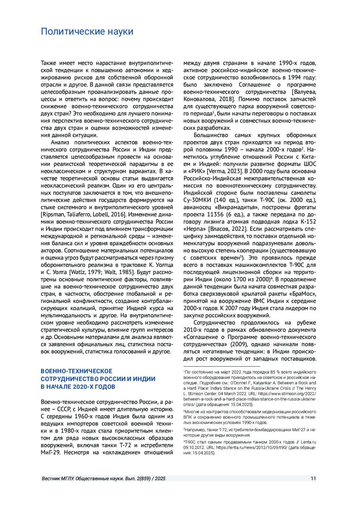 11. Волынчук А. Б. Особенности военно-технического сотрудничества России и Индии: динамика, риски и перспективы партнерства // Азиатско-Тихоокеанский регион: экономика, политика, право. 2024. Т. 26. № 3. С. 94-115. EDN: DQFGHK