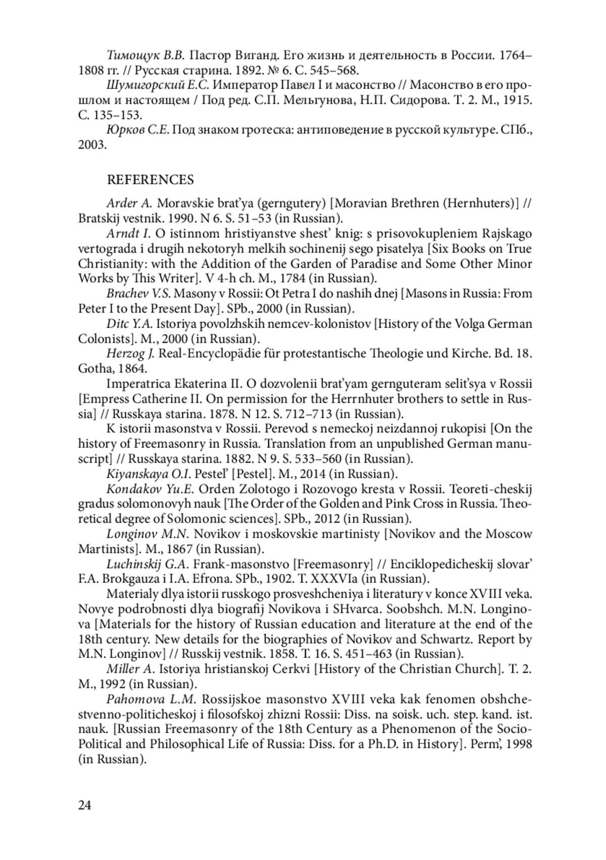 25. Сорокин Ю.А. Павел I и “вольные каменщики” // Вопросы истории. 2005. № 11. С. 19-37.