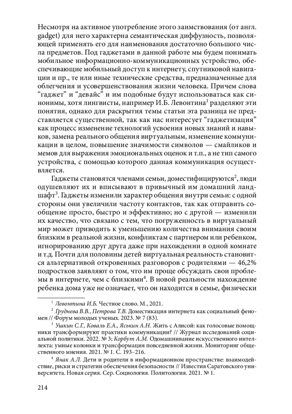 Было бы ошибочным оценивать влияние гаджетов на повседневные практики, в том числе семейные по шкале “положительное – отрицательное”. “Гаджетизация” – сложный процесс, требующий пристального изучения.