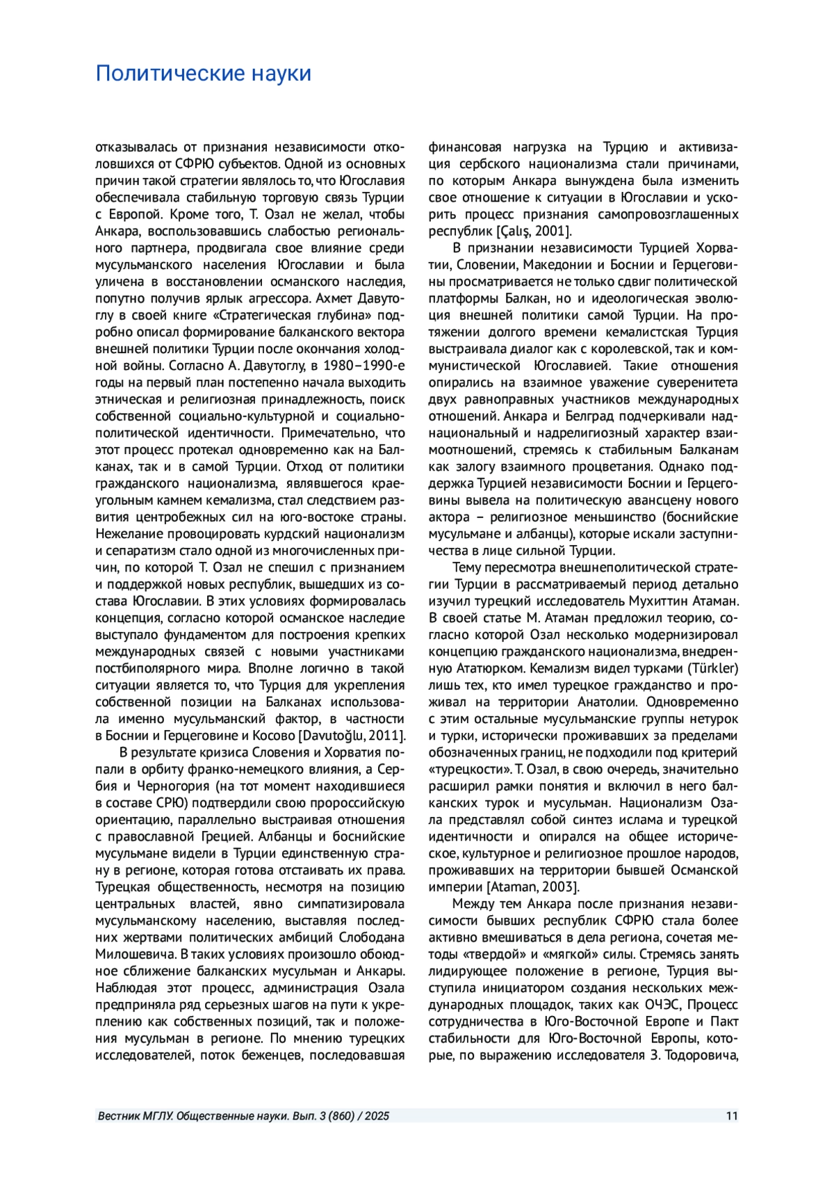 4. Todorović Z. Balkan - Turska spoljna polıtıka (Neoosmanızam) - Srpskı Odgovorı // Сварог. 2020. No 21. C 91-113.