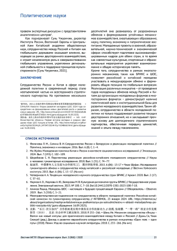 3. Широбоков С. Н. Перспективы реализации российско-китайского молодежного сотрудничества // Наука о человеке: гуманитарные исследования. 2018. Вып. 1 (31). С. 74-77. EDN: TIEIBT