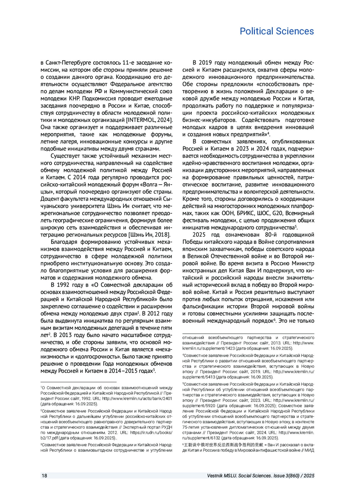 8. Межправительственная подкомиссия по сотрудничеству в области молодежной политики Российско-китайской комиссии по гуманитарному сотрудничеству // INTERMOL. 23 января 2024. URL: https://intermol.su/about/organizations/mezhpravitelstvennaya-podkomissiya-po-sotrudnichestvu-v-oblasti-molodyezhnoy-po-litiki-rossiysko-kit/(дата обращения: 16.09.2025).