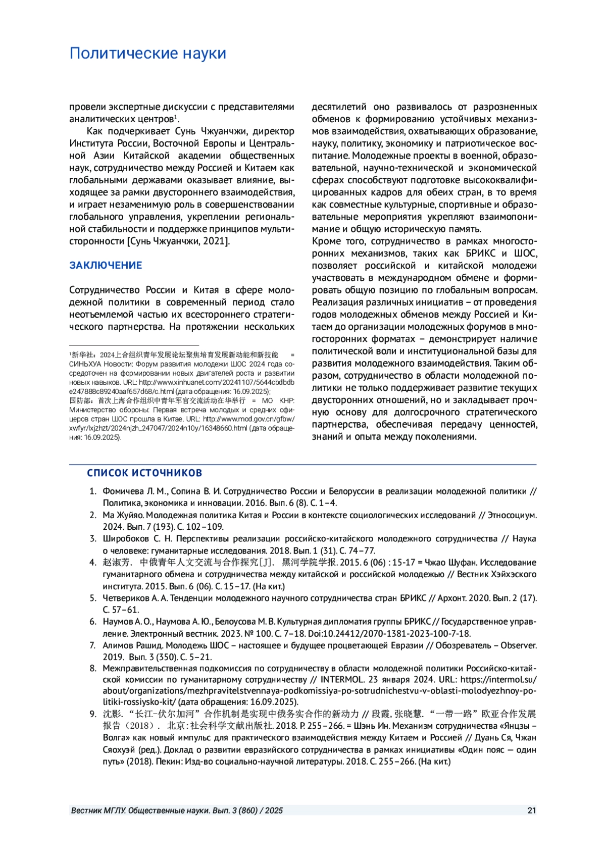 Сунь Чжуанчжи. Стратегическое взаимодействие Китая и России в многостороннем формате: проблемы и перспективы // Форум по вопросам Северо-Восточной Азии. 2021. Вып. 03. С. 33-45. (На кит.).