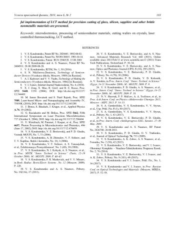 12. Raciukaitis G., Brikas M. / Proc. SPIE 5662, Fifth International Symposium on Laser Precision Microfabrication, 717 (October 8, 2004); http:/. DOI: 10.1117/12.596604 EDN: LVQZLZ