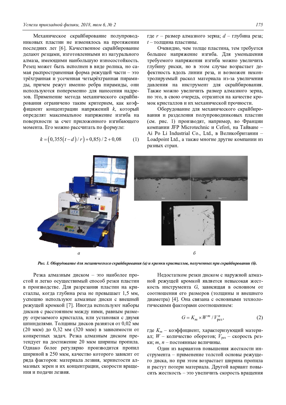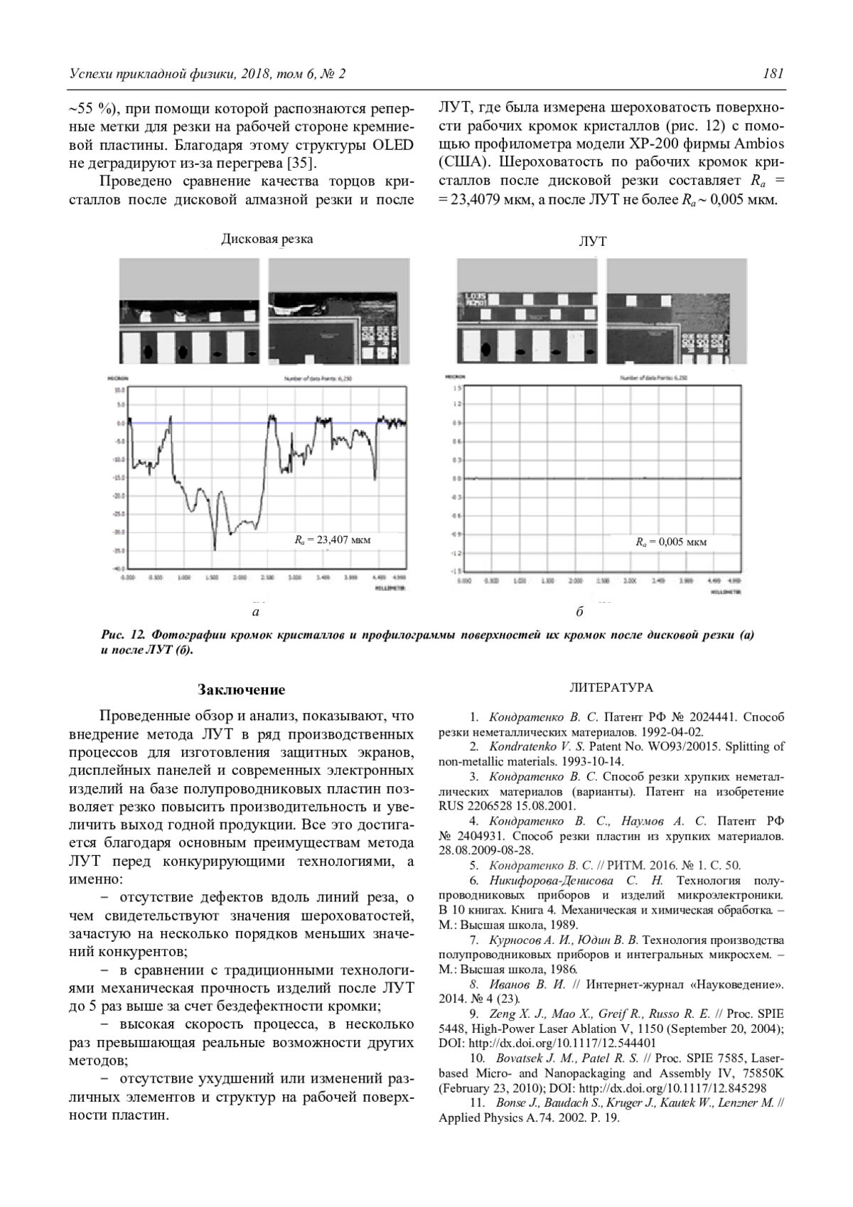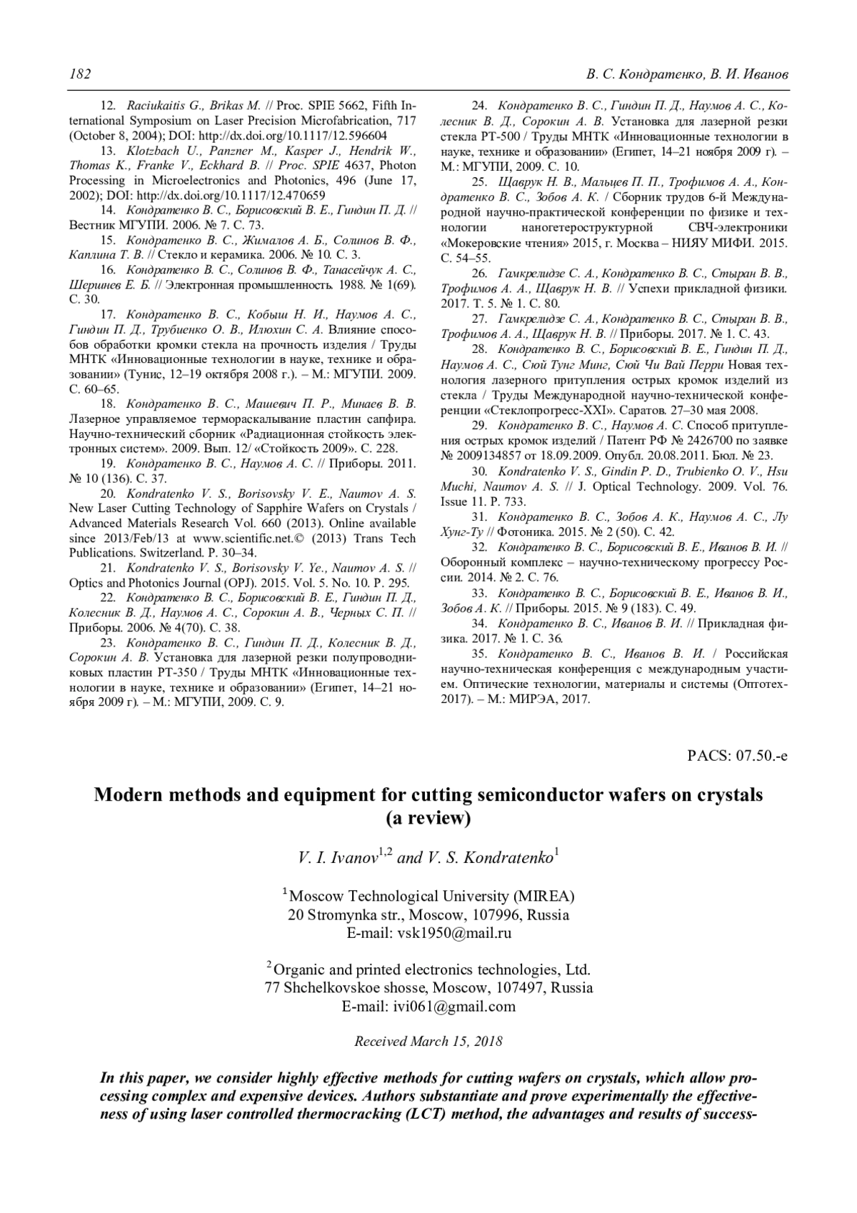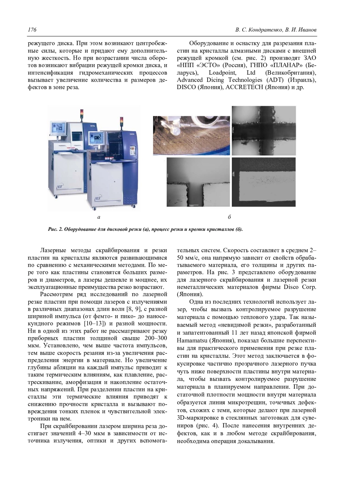 Иванов В. И., Кондратенко В. С. Современные методы и оборудование для резки приборных пластин на кристаллы (обзор) 174
