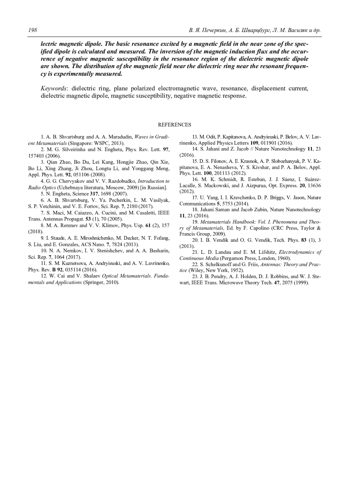 13. Odit M., Kapitanova P., Andryieuski A., Belov P., Lavrinenko A. V. // Applied Physics Letters. 2016. Vol. 109. P. 011901.