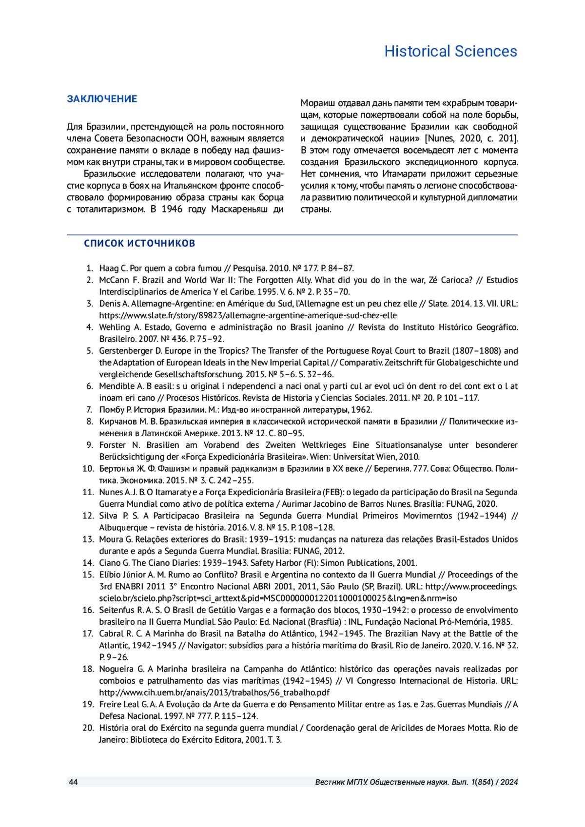 9. Forster N. Brasilien am Vorabend des zweiten Weltkrieges Eine Situationsanalyse unter besonderer Berücksichtigung der “Força Expedicionária Brasileira”. Wien: Universitat Wien, 2010.