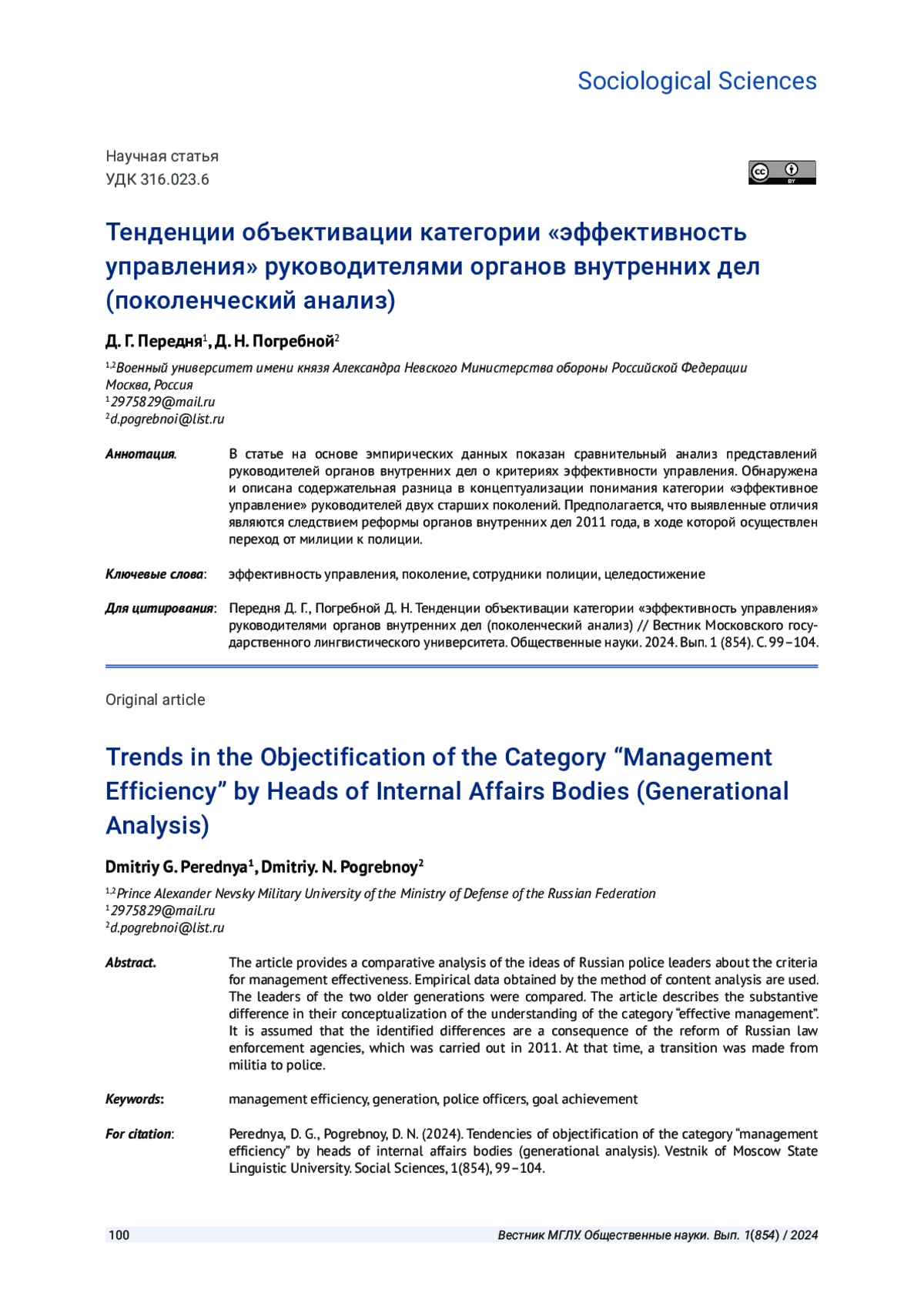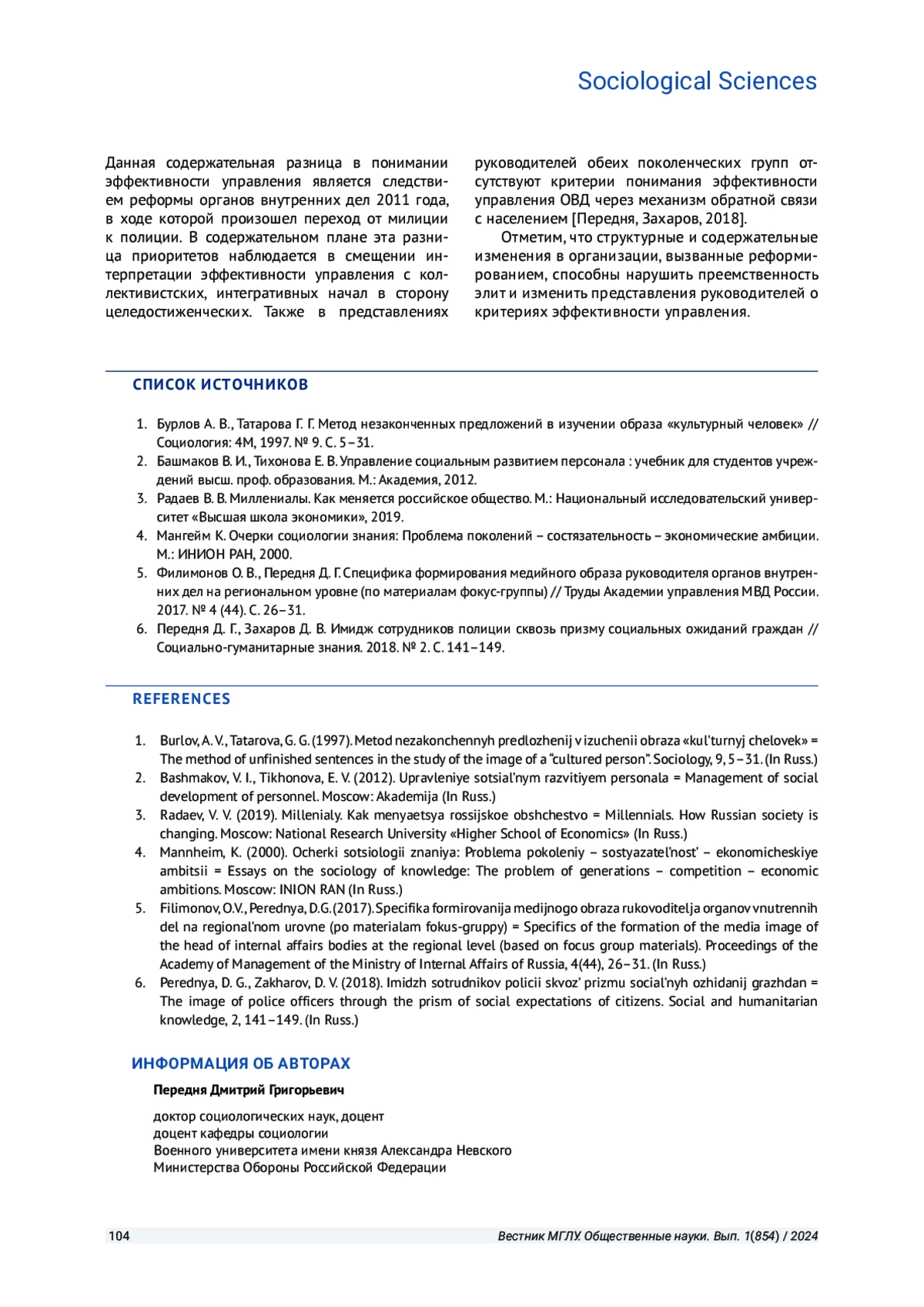 6. Передня Д. Г., Захаров Д. В. Имидж сотрудников полиции сквозь призму социальных ожиданий граждан // Социально-гуманитарные знания. 2018. № 2. С. 141-149. EDN: YVQXIV