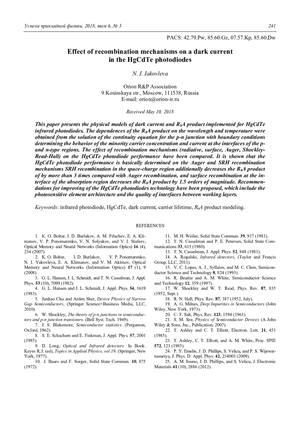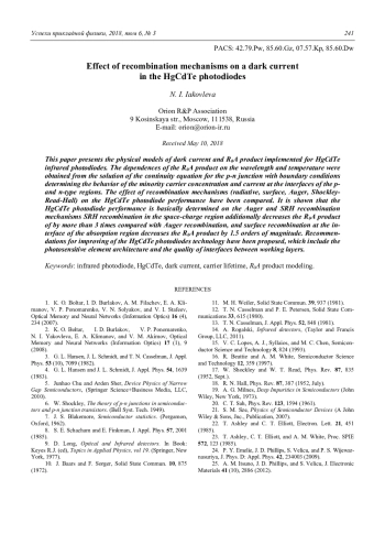 Effect of recombination mechanisms on a dark current in the HgCdTe photodiodes N. I. Iakovleva 231