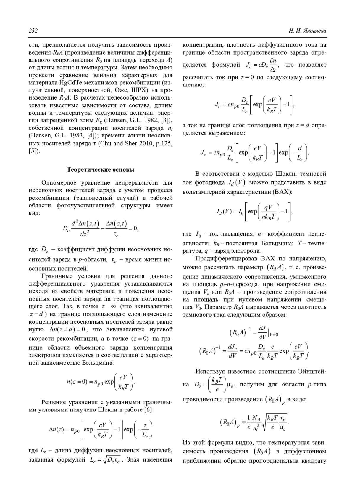 Влияние механизмов генерации-рекомбинации неосновных носителей заряда на темновой ток фотодиодов на основе HgCdTe Яковлева Н. И. 231