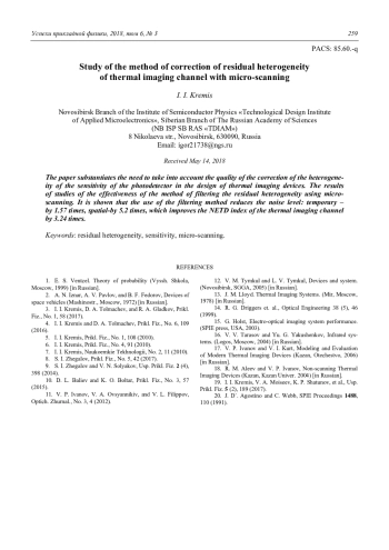 Study of the method of correction of residual heterogeneity of thermal imaging channel with micro-scanning I. I. Kremis 252
