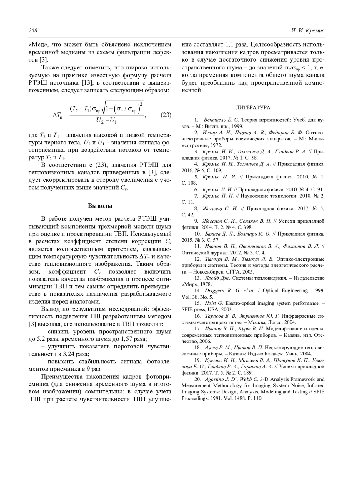 20. Agostino J. D`, Webb C. 3-D Analysis Framework and Measurement Methodology for Imaging System Noise, Infrared Imaging Systems: Design, Analysis, Modeling and Testing // SPIE Proceedings. 1991. Vol. 1488. P. 110.