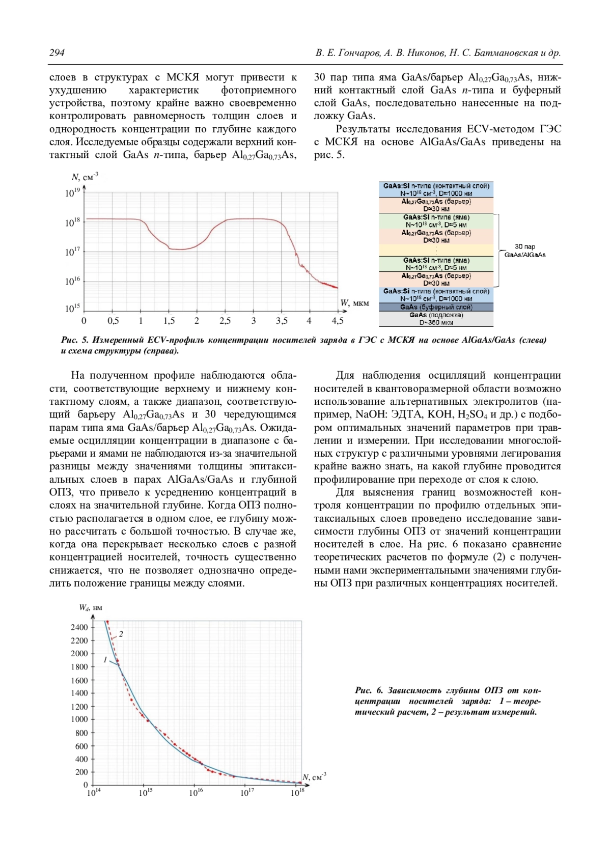 Гончаров В. Е., Никонов А. В., Батмановская Н. С., Пашкеев Д. А., Кудряшов А. В. Физические пределы контроля электрофизических характеристик квантоворазмерных структур средствами электрохимического вольт-фарадного профилирования 290