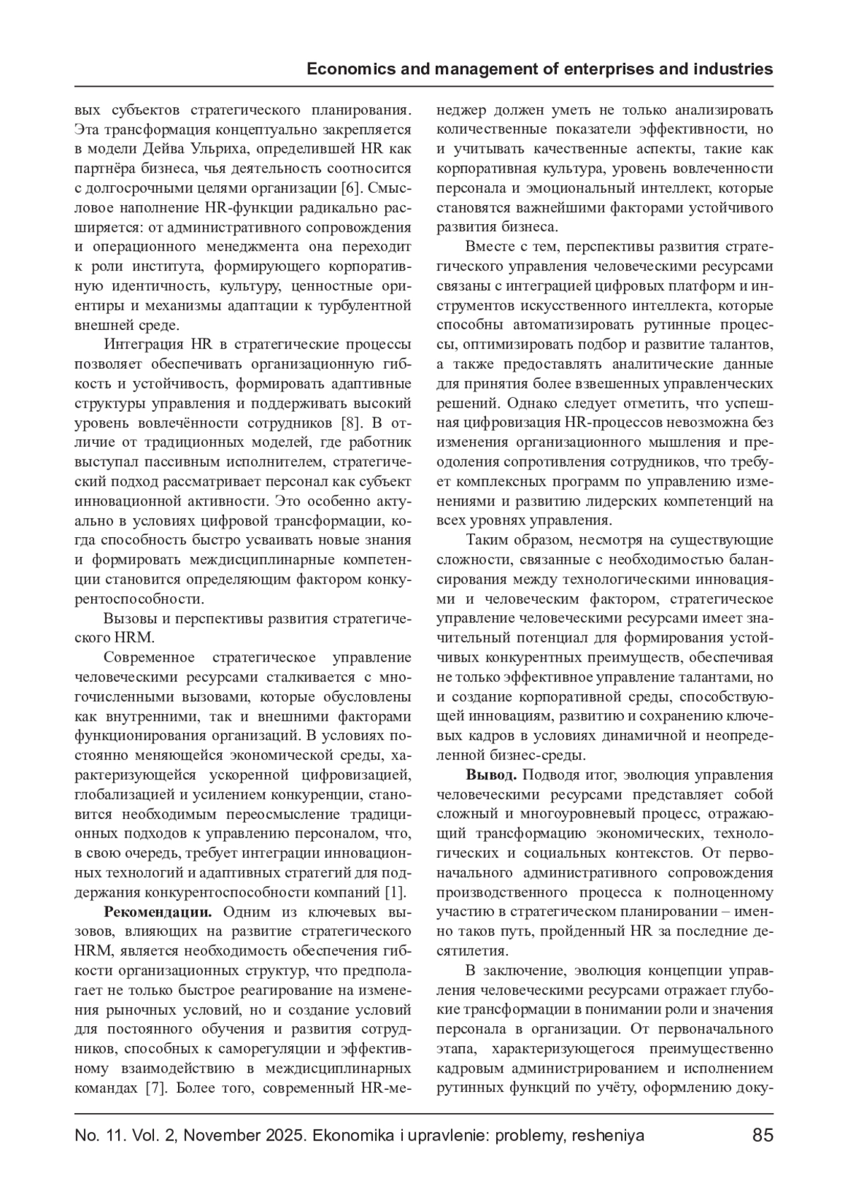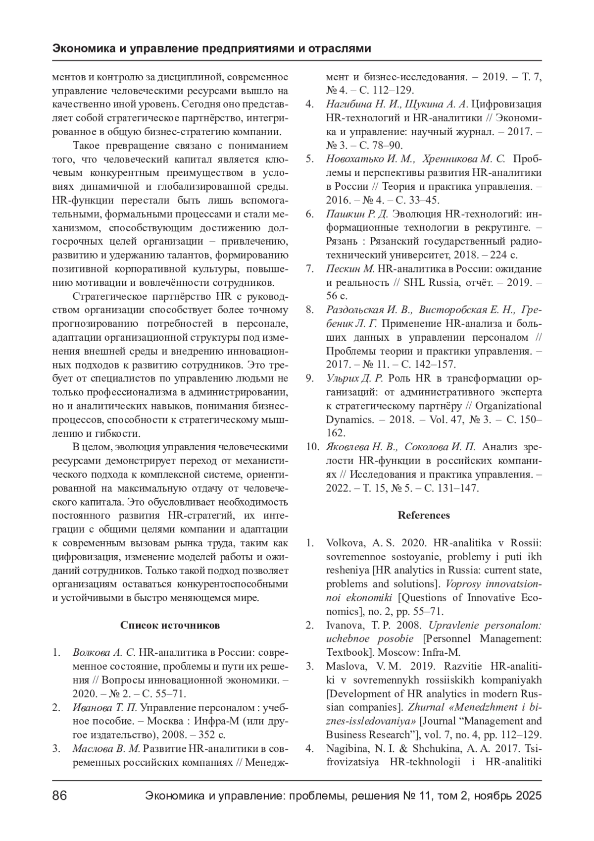 10. Яковлева Н. В., Соколова И. П. Анализ зрелости HR-функции в российских компаниях // Исследования и практика управления. - 2022. - Т. 15, № 5. - С. 131-147.