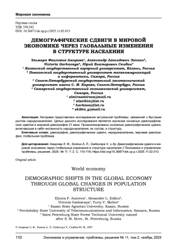 Целью данного исследования является изучение основных демографических сдвигов в мировой демографии 21 века. Проанализированы основные демографические сдвиги, включающие в себя численность народонаселения, их состав, и структуру.