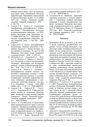 9. Сафиуллин Н. А. Анализ демографической конъюнктуры сельского населения в Республике Татарстан // Знания молодых: наука, практика и инновации: сб. науч. тр. XIX Междунар. науч.-практ. конф. аспирантов и молодых ученых. - 2020. - С. 208-211. EDN: IBDKLH