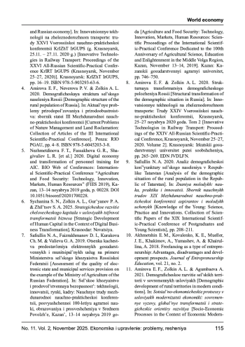 5. Nezhmetdinova F. T., Fassakhova G. R., Shagivaliev L. R. [et al.] Digital economy and transformation of personnel training for AIC // BIO Web of Conferences: International Scientific-Practical Conference “Agriculture and Food Security: Technology, Innovation, Markets, Human Resources” (FIES 2019), Kazan, 13-14 ноября 2019 года. - Kazan: EDP Sciences, 2020. - P. 00228. -. DOI: 10.1051/bioconf/20201700228 EDN: FHUTRZ