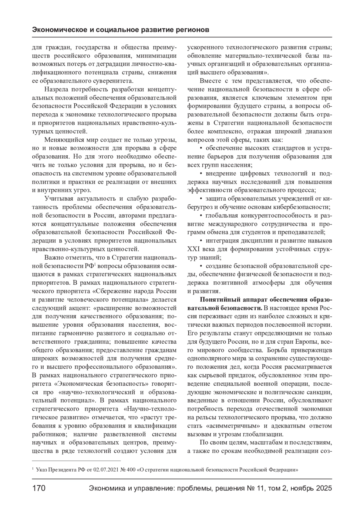 4. Куров С. В., Гаврищук В. В. Образовательная безопасность как фактор обеспечения национальной безопасности России // Ежегодник российского образовательного законодательства. - 2021. - Т. 16. - № 21. - С. 39-54. EDN: AWBQVQ