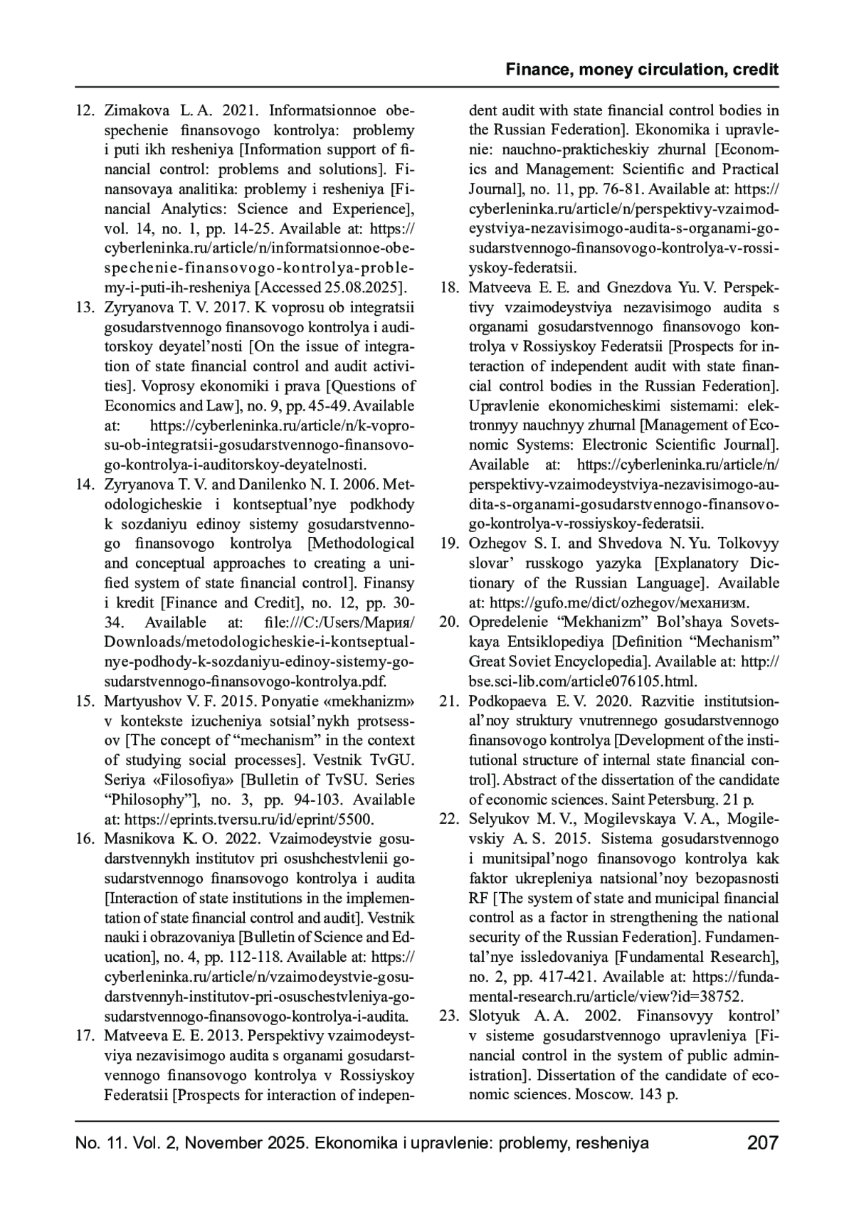 14. Зырянова Т. В., Даниленко Н. И. Методологические и концептуальные подходы к созданию единой системы государственного финансового контроля // Финансы и кредит. - 2006. - № 12. - С. 30-34. - URL:file:///C:/Users/Мария/Downloads/metodologicheskie-i-kontseptualnye-podhody-k-sozdaniyu-edinoy-sistemy-gosudarstvennogo-finansovogo-kontrolya.pdf.