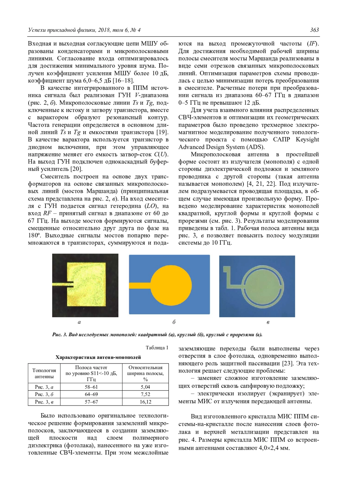 Лисицкий А. П., Ильков В. К., Савельев Ю. Н. Система-на-кристалле со встроенными антеннами V-диапазона на гетероструктурах нитрида галлия 361